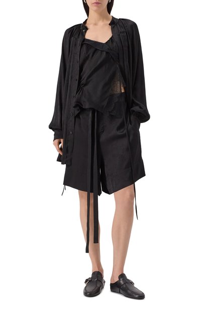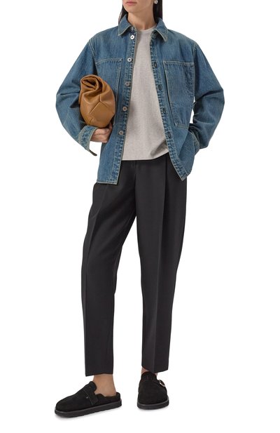 Сабо на небольшом блочном каблуке выполнили из козьей кожи с тиснением под ящерицу. Союзку модели дополнили перемычкой с фирменной пряжкой.