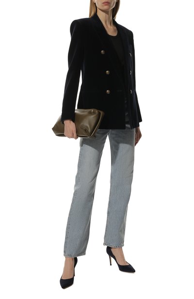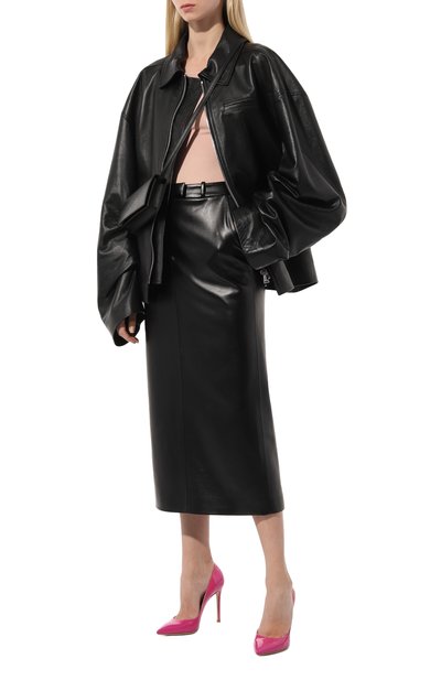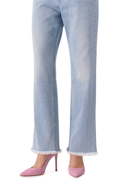 Для создания туфель-лодочек Gianvito выбрали замшу, а для внутренней отделки – мелкозернистую кожу. Пару с брендированной стелькой установили на высокую шпильку.