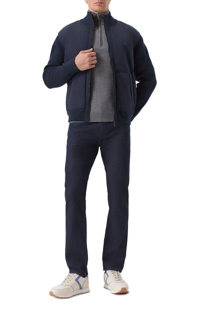 Кардиган Manny с воротником-стойкой выполнили из рифленого хлопкового трикотажа с добавлением полиамида. Модель с фирменным патчем на рукаве и контрастными полосами на плечах застегивается молнией.