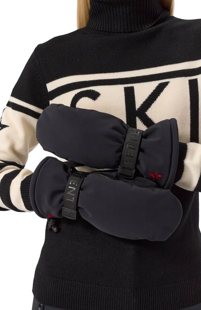 Утепленные варежки Hollywood сшили из влагоотталкивающей тафты на основе вторичного нейлона. Аксессуар дополнили вставкой из канваса с монограммой PJS из силиконовых точек. На манжете предусмотрели эластичную кулиску со стоппером. Одно из изделий декорировали брендированным патчем.