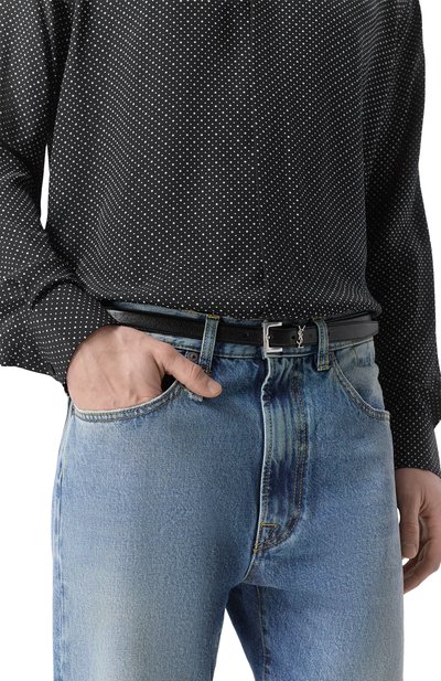 Ремень изготовили из кожи ягненка, дубленной без хрома и металлов. Аксессуар с прямоугольной пряжкой дополнили тренчиком в виде монограммы Кассандра.