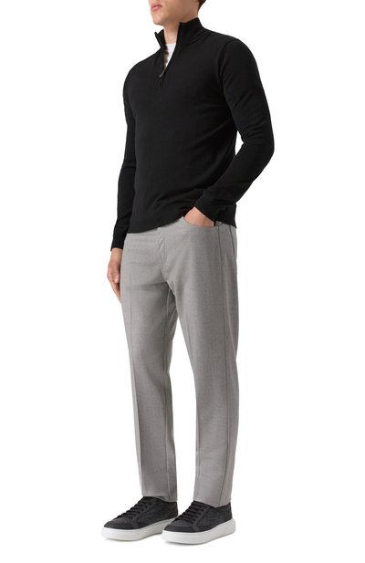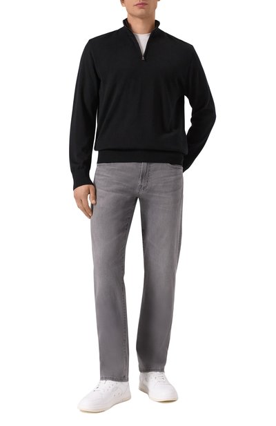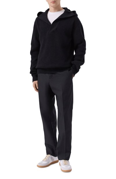 Джемпер с короткой молнией связали из ворсистой шерстяной пряжи с добавлением нейлона. Левый рукав модели дополнили карманом с фирменной брендированной линзой Goggle.