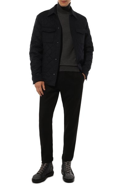 Ботинки из ворсованного текстиля укрепили гладкой кожей, вытиснив логотип на язычке и сбоку. Задник дополнили миниатюрной петлей с фирменной полоской в цветах швейцарского флага. Модель с усиленными верхними петлями шнуровки установили на подошву с протектором Vibram.