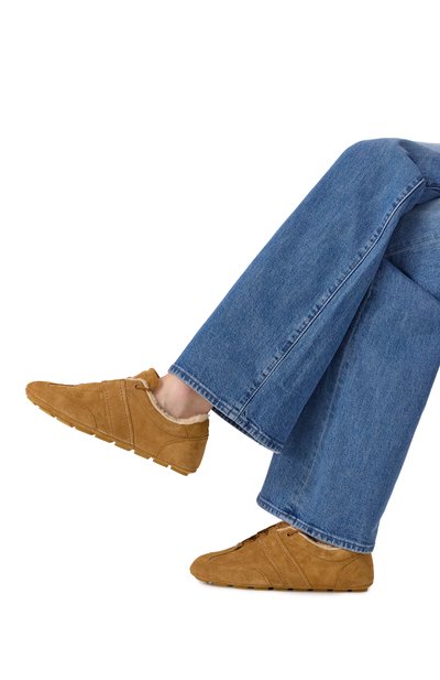 Кроссовки Quarry с тонкой протекторной подошвой сшили из телячьей замши. Модель с рельефными полосками и логотипом марки сбоку дополнили брендированной петлей сзади и фирменным патчем спереди.