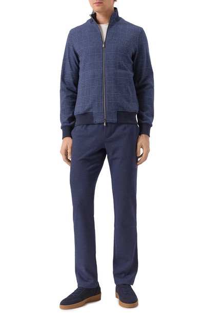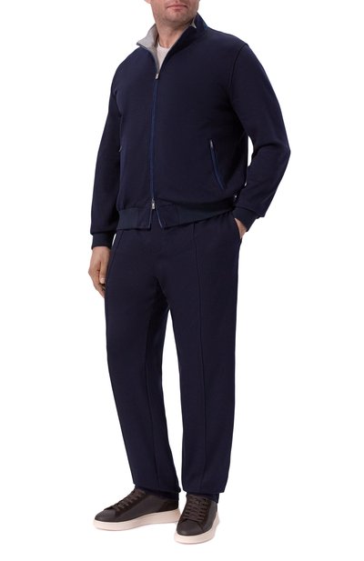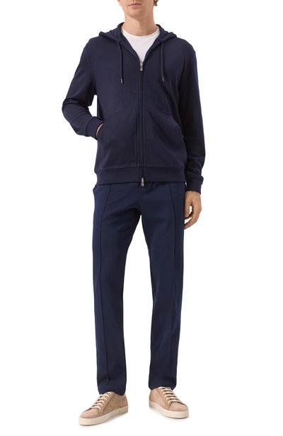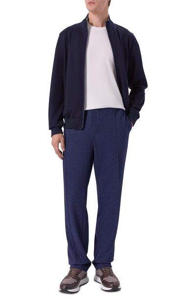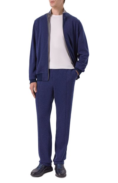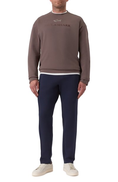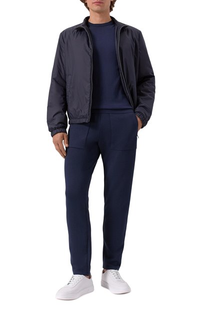 Брюки с эластичным поясом-кулиской выполнили из микса хлопка, полиамида и кашемира с фактурной изнанкой. Рядом с одним из трех карманов модели расположили миниатюрную фирменную нашивку.
