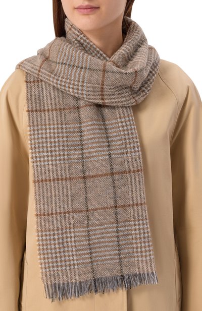 Эластичный шарф с леопардовым мотивом связали из шерстяной пряжи, укрепленной полиамидом. Аксессуар, длины которого хватит, чтобы несколько раз обернуть вокруг шеи, украсили фирменным патчем.