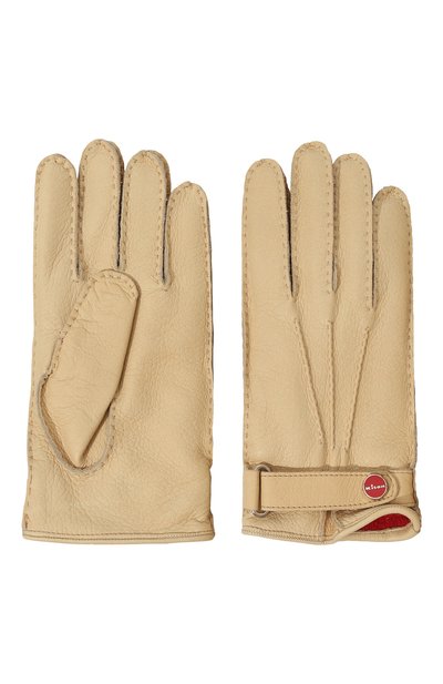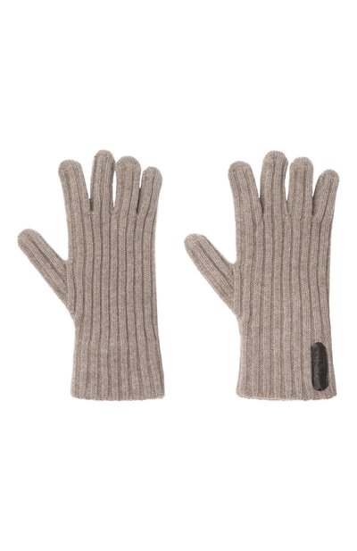 Перчатки выполнили из зернистой кожи и рифленого кашемирового трикотажа. Аксессуар с двухслойной манжетой, подчеркнутой узким кантом, дополнили ремешком с брендированной кнопкой.