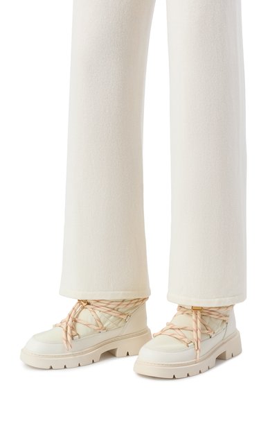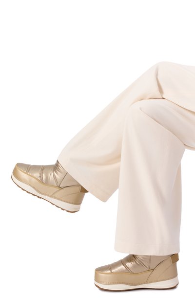 Стеганые полусапоги Mezzaluna со шнуровкой сшили из водонепроницаемого текстиля. Модель с кулиской на голенище дополнили массивной, но легкой протекторной подошвой из термопластичной резины.
