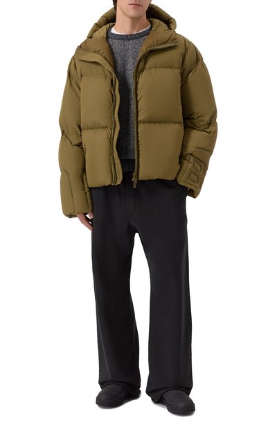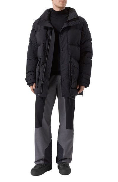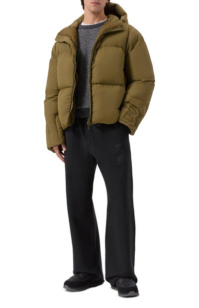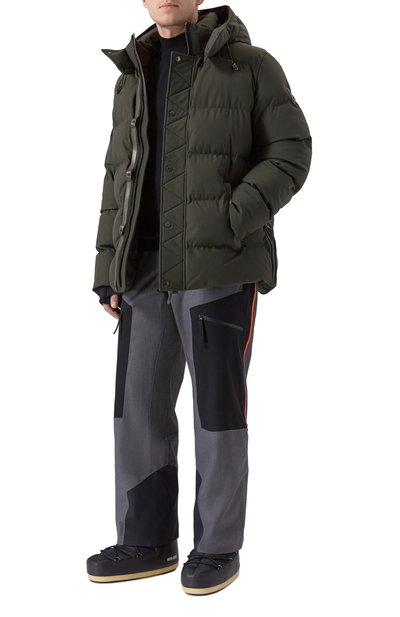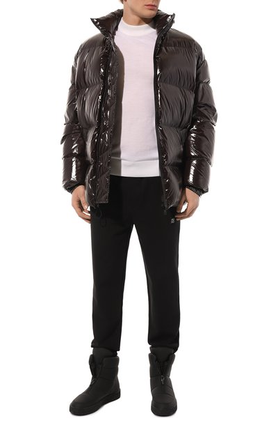 Непромокаемые утепленные сапоги Moon247 выполнили из полиэстера и полимерного материала, напоминающего кожу. Модель с логотипом на голенище с кулиской и шнуровкой установили на широкую протекторную подошву из EVA.