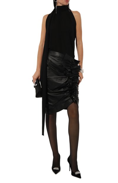 Туфли Elenie с зауженным мысом выполнили из лакированной телячьей кожи. Модель на высокой шпильке застегивается на щиколотке ремешком с пряжкой, покрытым миниатюрными кристаллами.