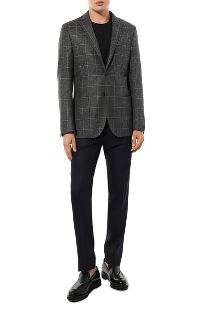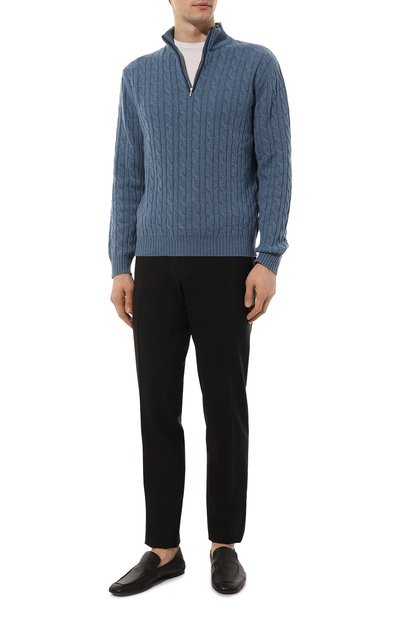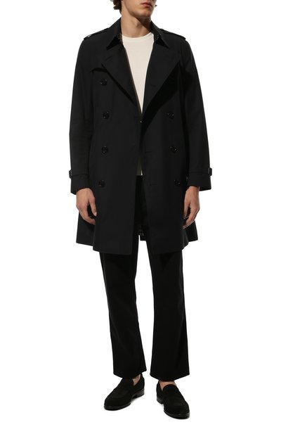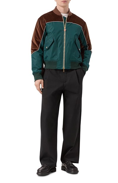 Пенни-лоферы с брендированной стелькой фирменного желтого оттенка Golden Cream выполнили из зернистой кожи. Союзку из ворсистого текстиля дополнили перемычкой с прорезью.