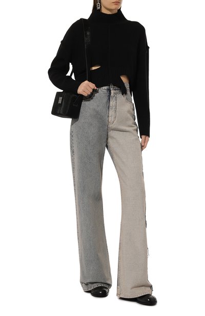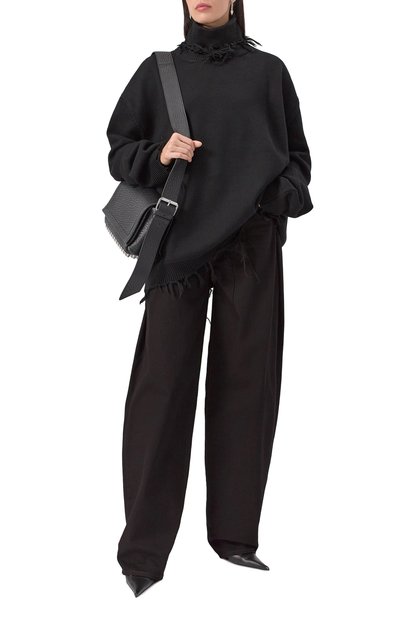 Свитер со спущенной линией плеч и воротником поло связали из чистой шерсти. Модель с отделкой в рубчик застегивается двумя акцентными пуговицами на короткой планке спереди.