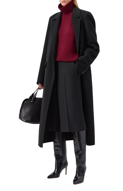Свитер со спущенной линией плеч и воротником поло связали из чистой шерсти. Модель с отделкой в рубчик застегивается двумя акцентными пуговицами на короткой планке спереди.