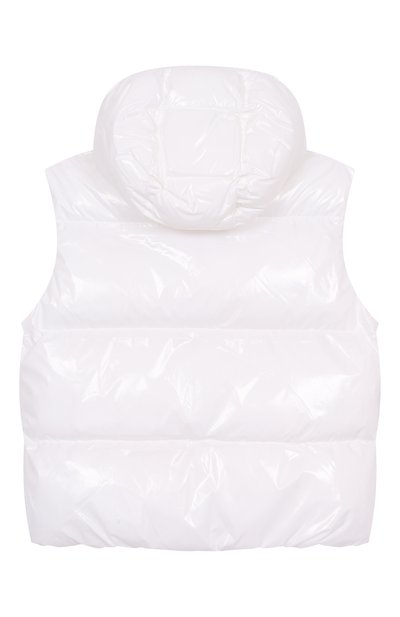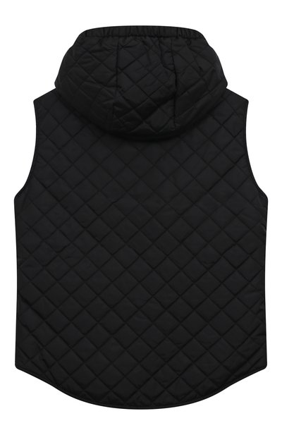 Стеганый жилет на утином пуху сшили из вторичного полиэстера. Модель с мотивом Burberry Check на подкладе дополнили капюшоном, боковыми карманами и кулиской по краю. Спереди — аппликация с медвежонком Thomas Bear.