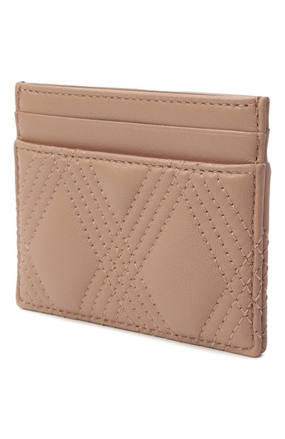 Футляр Highlands выполнили из зернистой телячьей кожи и смесового канваса в клетку Burberry Check. Внутренний карман для чеков отделали наппой. Аксессуар с четырьмя карточными слотами декорировали патчем Knight stamp с металлической эмблемой Equestrian Knight Design.