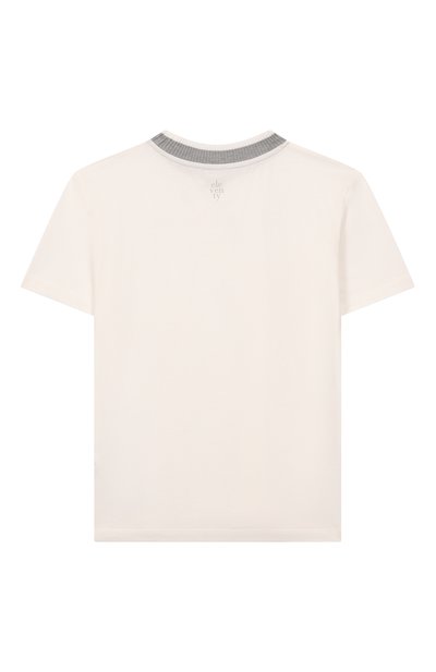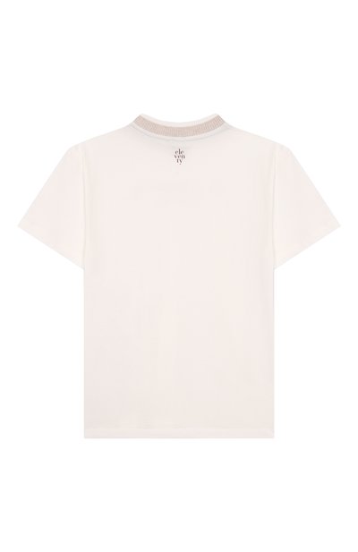 Футболку с круглой рифленой горловиной выполнили из хлопкового джерси. Спереди модель украсили контрастной надписью, а на спинку нанесли логотип.