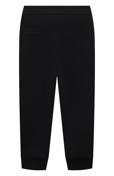 Представл енные эксклюзивно в ЦУМе джоггеры выполнили из хлопкового трикотажа. Модель с эластичным поясом-кулиской дополнили контрастными лампасами, в тон которым – брендированная вышивка рядом с одним из трех карманов.