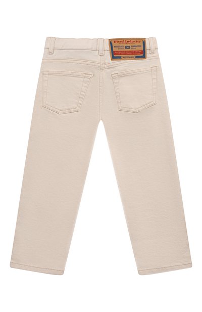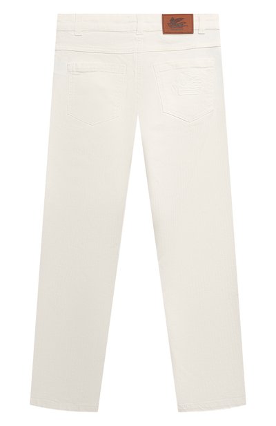 Джинсы прямого кроя выполнили из эластичного денима. На поясе сзади модель с пятью карманами украсили небольшим кожаным патчем с тисненым логотипом.