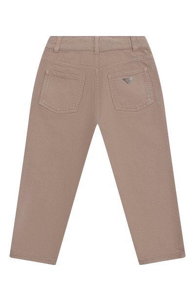 Джинсы прямого кроя выполнили из эластичного денима. На поясе сзади модель с пятью карманами украси ли небольшим кожаным патчем с тисненым логотипом.