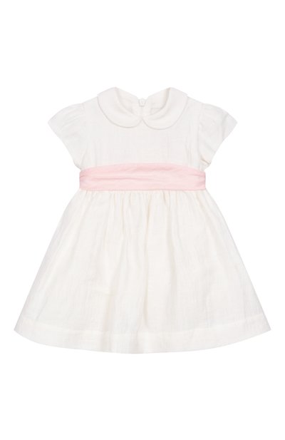 Платье с оборкой и эластичной вставкой на линии талии сшили из хлопкового трикотажа и вискозного твила с цветочным мотивом. Модель с кружевной отделкой на отложном воротнике и монограммой DG спереди застегивается потайной молнией сзади. В комплекте – шорты.