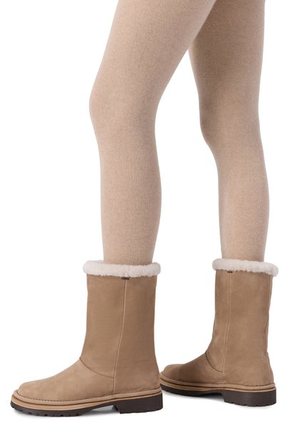 Для создания луноходов La Plagne на двухслойной подошве выбрали стриженую овчину, а для внутренней отделки – экомех. Снизу пару дополнили бархатистым рантом, а сверху предусмотрели текстильную кулиску с брендированным стоппером.