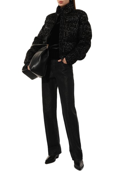 Укороченный свитшот свободного кроя выполнили из хлопкового трикотажа. Модель с высокой горловиной и вшитой резинкой по низу декорировали брендированным патчем на спинке с фигурными вставками.