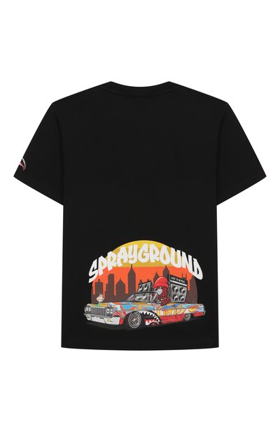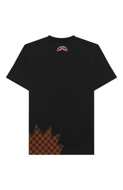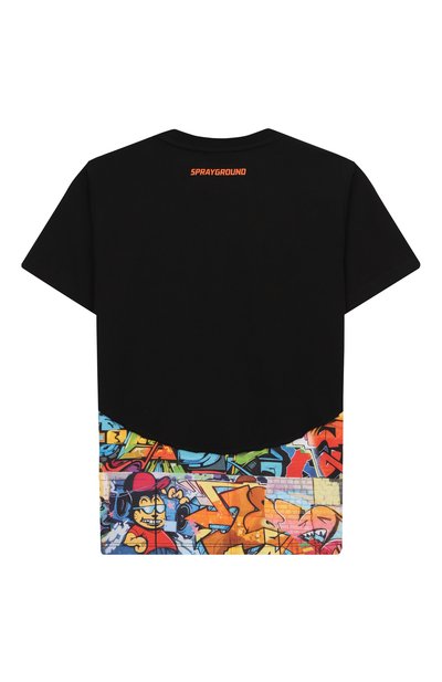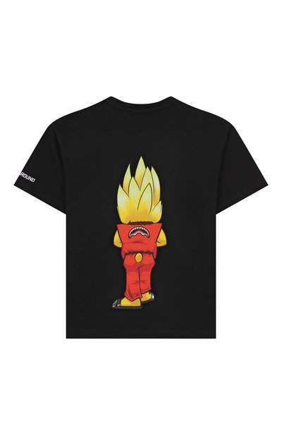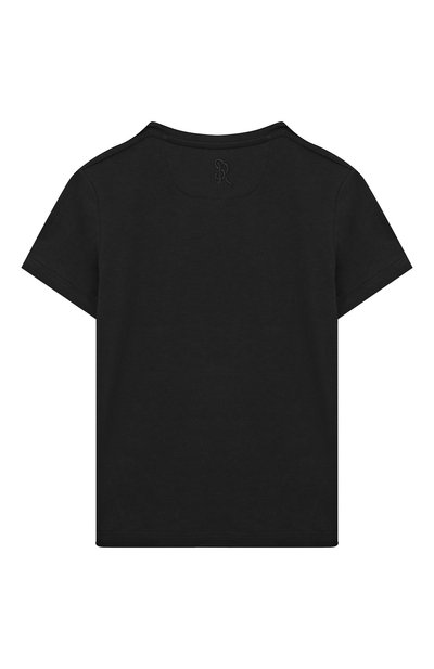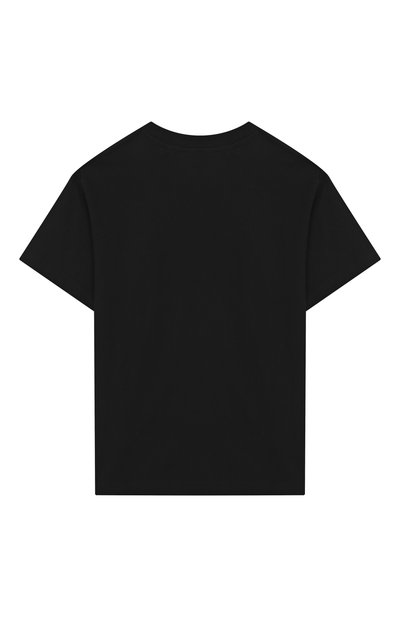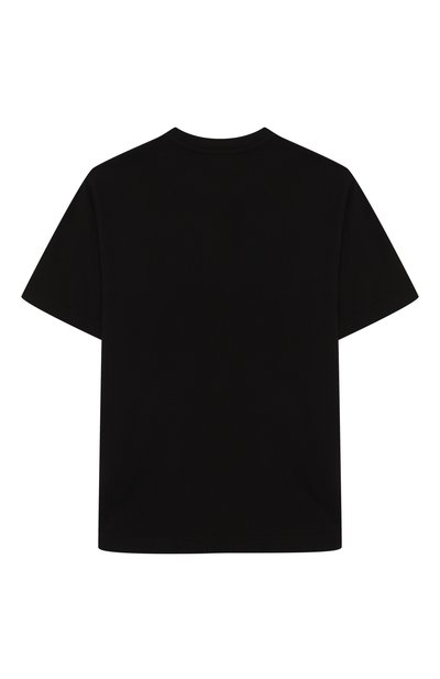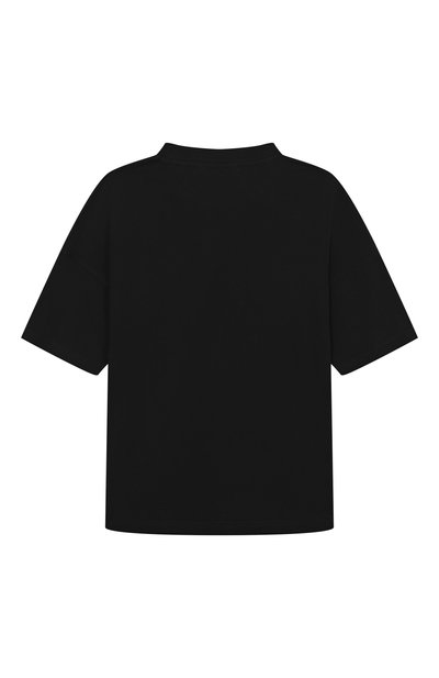 Футболку с круглым вырезом в рубчик выполнили из хлопкового трикотажа. Спереди модель украсили изображением сломанного плюшевого медвежонка и логотипом бренда.