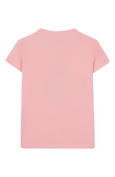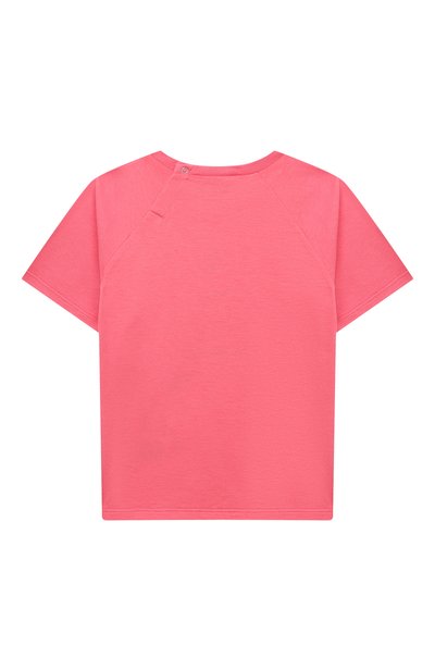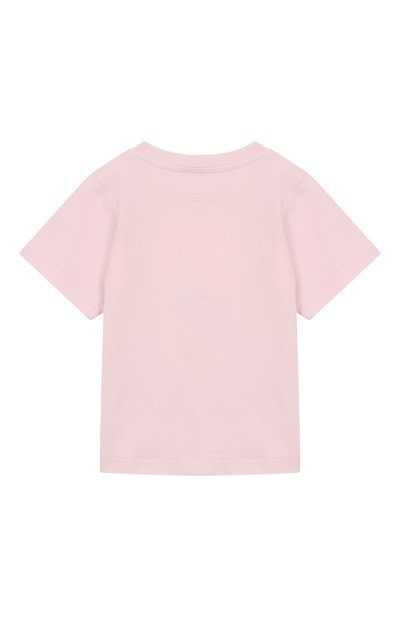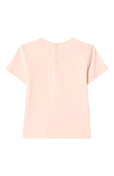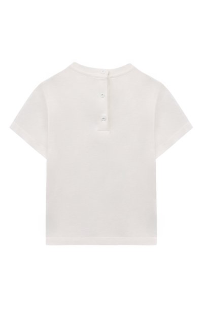 Футболку из хлопкового трикотажа украсили брендированным принтом с силуэтом фирменного медвежонка. Модель с круглой горловиной застегивается кнопкой на левом плечевом шве.