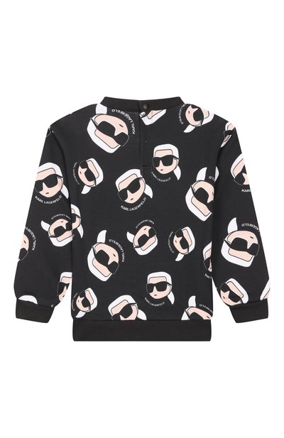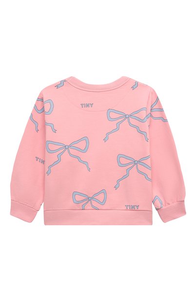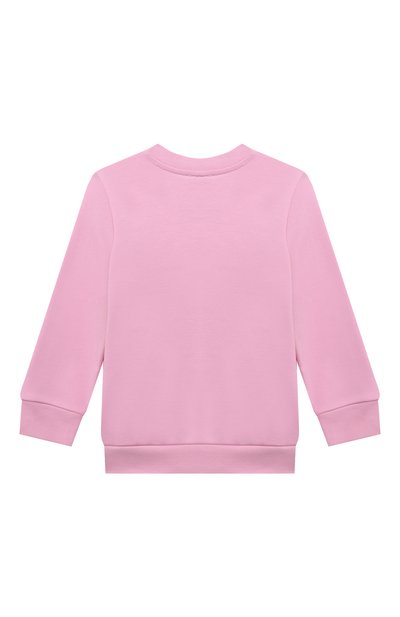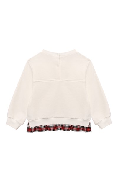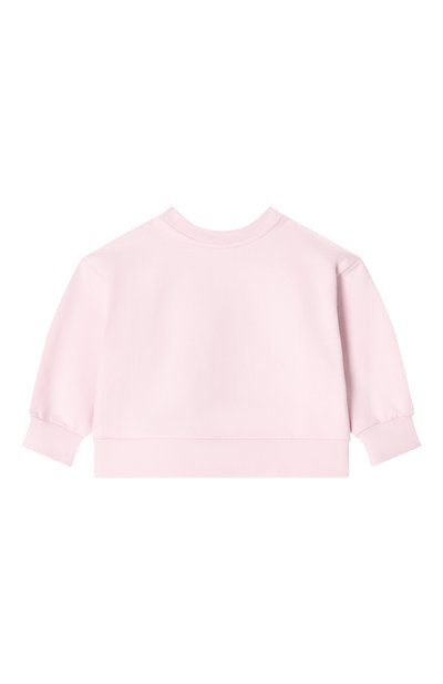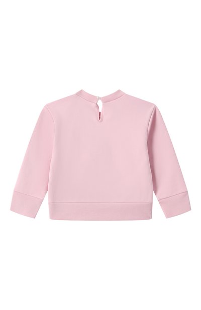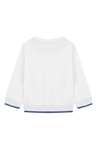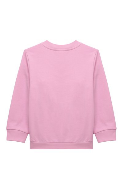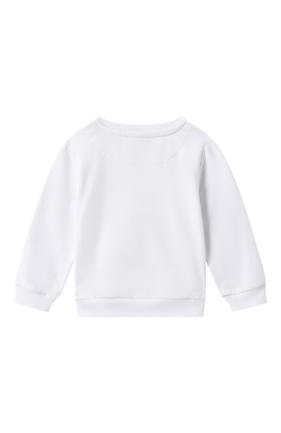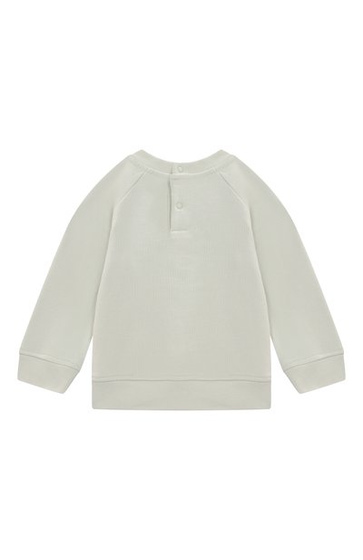 Свитшот с отделкой в рубчик и кнопкой на плече выполнили из хлопкового трикотажа с фактурной изнанкой. Спереди модель д екорировали логотипом и трафаретным силуэтом фирменного медвежонка.