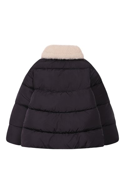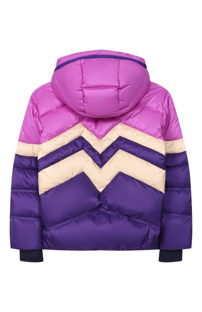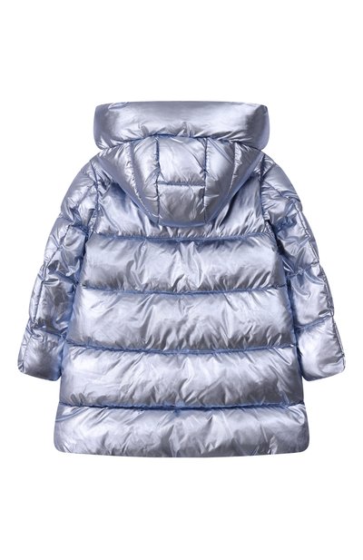 Стеганый пуховик с капюшоном и двумя боковыми карманами выполнили из перламутрового текстиля на основе нейлона и полиуретана. Модель с контрастной брендированной нашивкой спереди застегивается молнией с защитой от защемления.