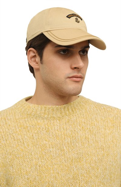Бейсболку с изогнутым козырьком и регулируемым ремешком выполнили из хлопкового твила и сетки. Спереди аксессуар украсили контрастным логотипом в готическом стиле.