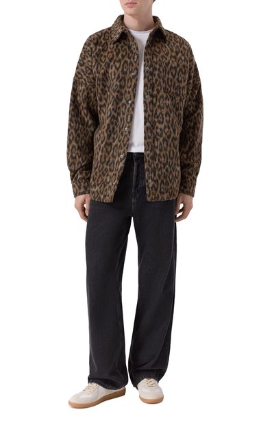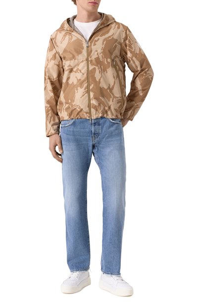Куртку-рубашку с клетчато-камуфляжным мотивом выполнили из хлопковой ткани с добавлением полиэстера. Модель с логотипом на спинке дополнили врезными боковыми карманами и накладными нагрудными с клапанами.