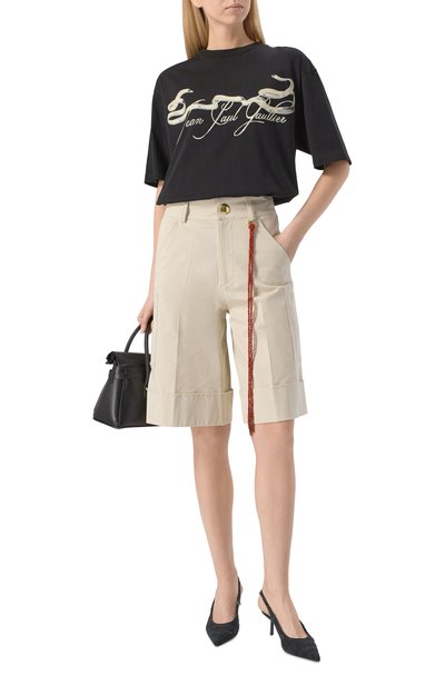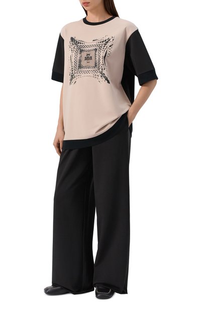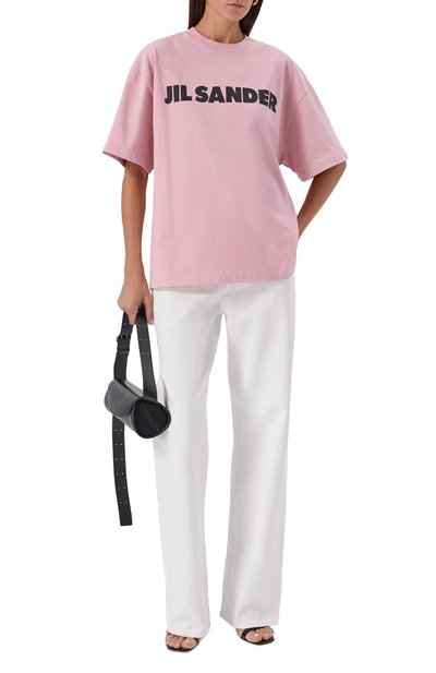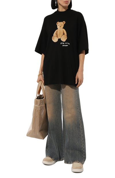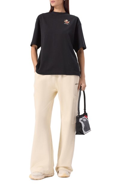 Футболку силуэта oversize выполнили из хлопкового джерси. Принадлежность модели марки обозначили крупным контрастным логотипом спереди.
