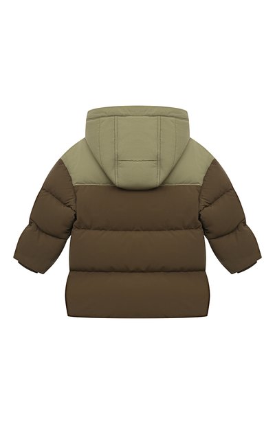 Пуховик из вторичного нейлона дополнили накладными нагрудными и потайными боковыми карманами. Модель на молнии, скрытой под штормовой планкой с кнопками, утеплили утиным пухом и пером. Снизу и на рукавах предусмотрели резинки.