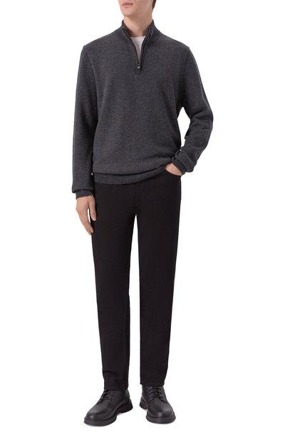 Джемпер Hettore с рифлеными манжетами, поясом и высоким воротом связали из шерстяной пряжи с добавлением хлопка. Модель застегивается короткой молнией.
