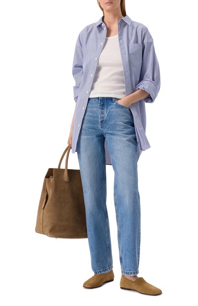 Джинсы C Ada с брендированным патчем на поясе сзади выполнили из денима на основе хлопка и лиоцелла. Один из четырех карманов модели украсили вышитым логотипом марки.