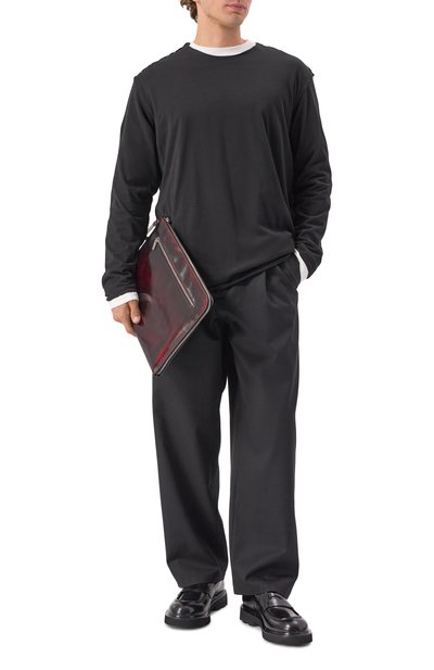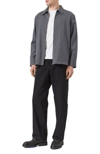Лоферы с рельефным швом на приподнятом круглом мысе выполнили из гладкой кожи. Модель на широкой протекторной подошве дополнили на союзке ремешком с пряжкой, а вдоль выреза – шнуром, продетым в люверсы.