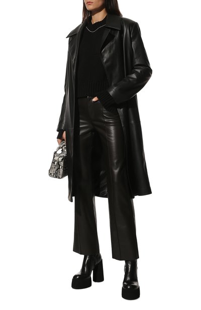Для создания ботильонов без застежки выбрали комбинацию гладкой телячьей кожи и зернистой стрейчевой наппы. Пару с петлей на голенище установили на высокий изогнутый каблук.