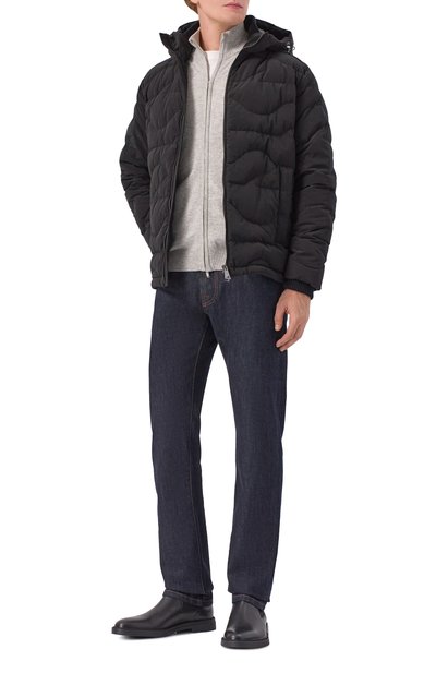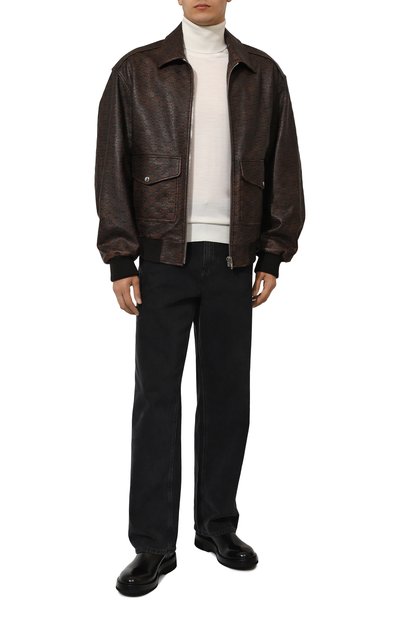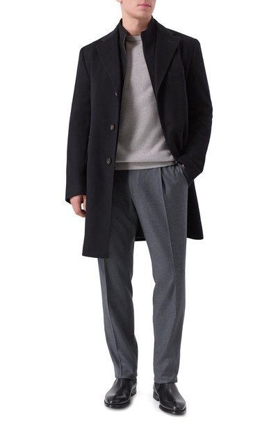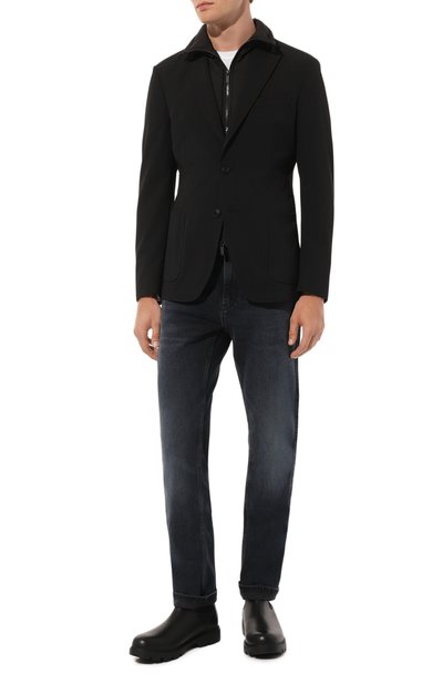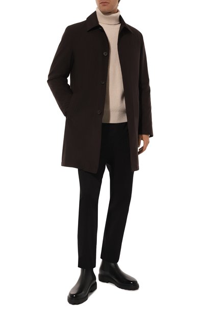 Челси с миндалевидным мысом выполнили вручную из отшлифованной кожи. Модель на литой резиновой подошве с квадратным каблуком дополнили короткой петлей на голенище.