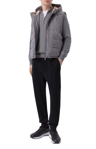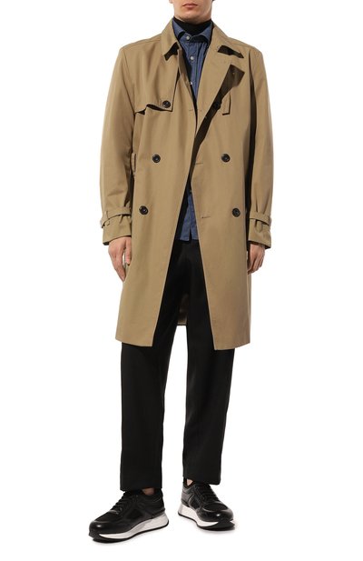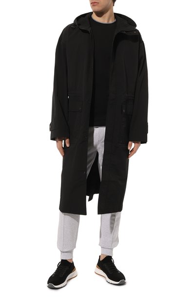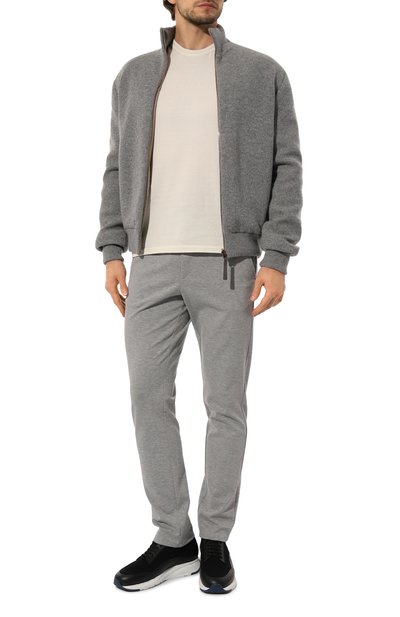 Кроссовки на брендированной подошве изготовили из текстиля, усиленного изнутри мягкой кожей. Модель с замшевой отделкой украсили нашивкой с логотипом на язычке и стежками фирменного алого оттенка по бокам.