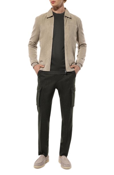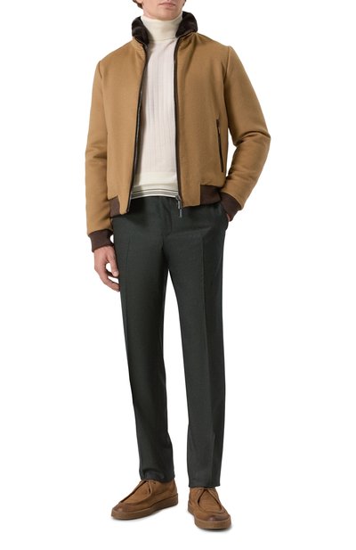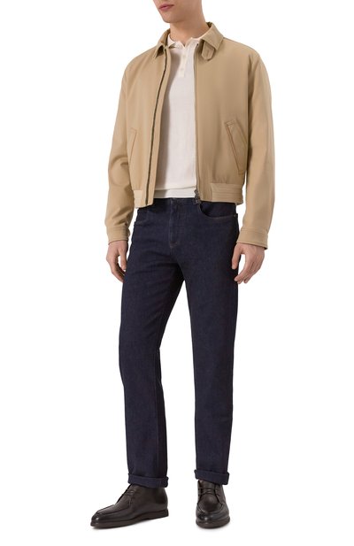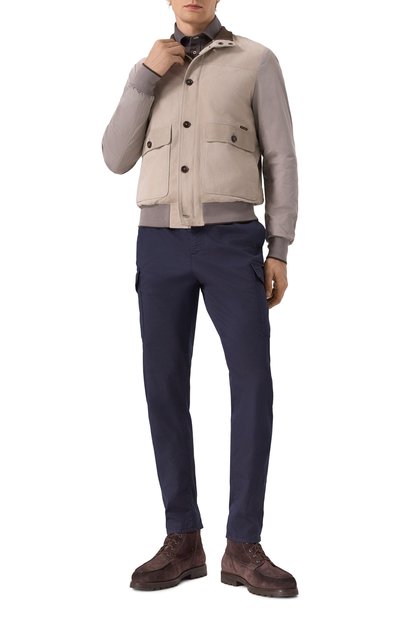 Бомбер с отделкой из трикотажа в рубчик и врезными боковыми карманами выполнили из матового полиэстера. Куртку на пуговицах декорировали вышитым в тон логотипом спереди.