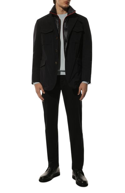 Для изготовления прямых джинсов использовали хлопковый деним. Роль декора у модели со шлевками на поясе и четырьмя карманами отдали контрастным швам.