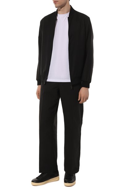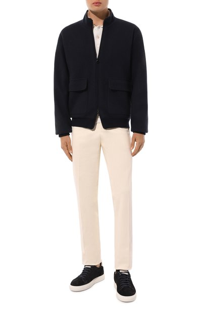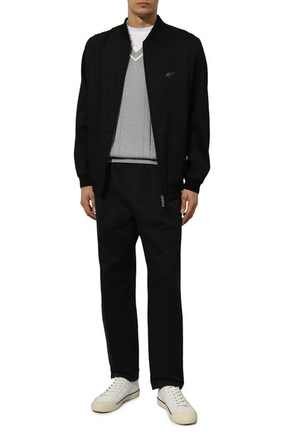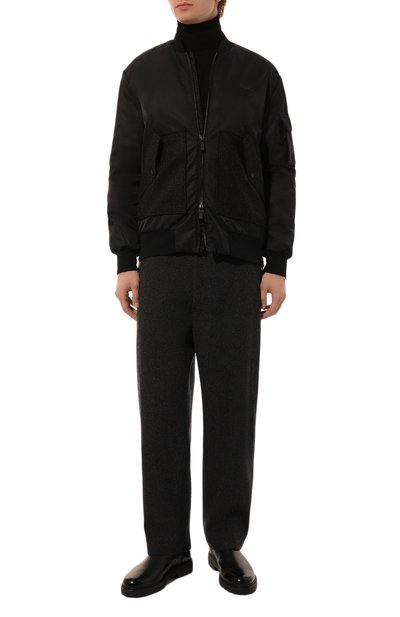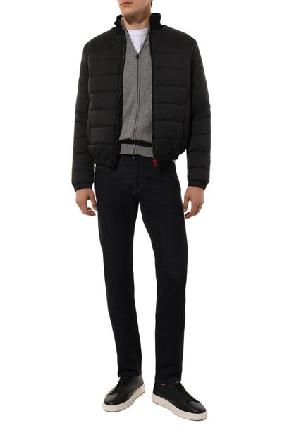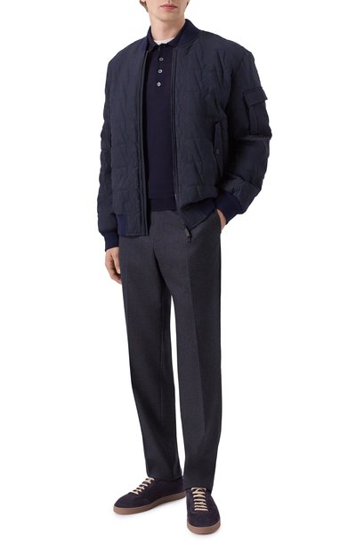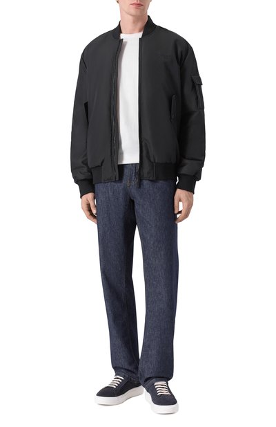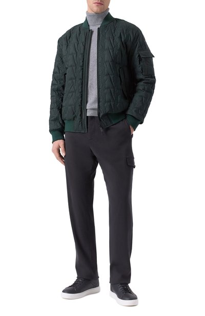 Стеганый бомбер с трикотажной отделкой в рубчик сшили из матового полиэстера. Куртка с V-образным вырезом и двумя боковыми карманами застегивается пуговицами.
