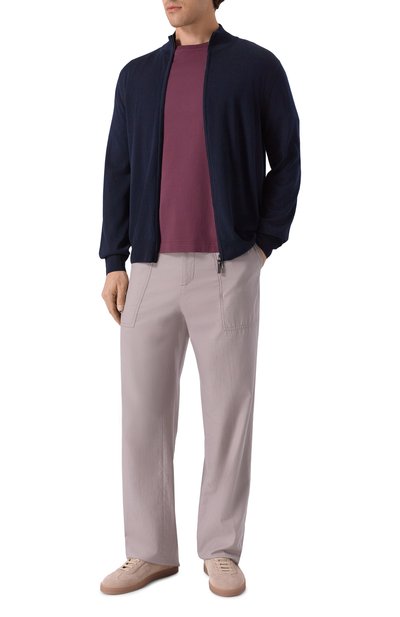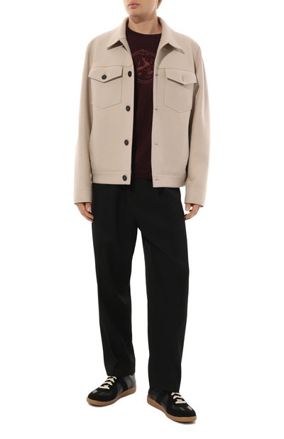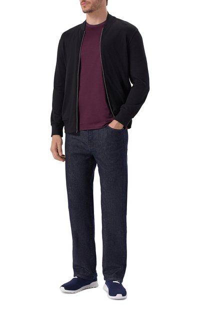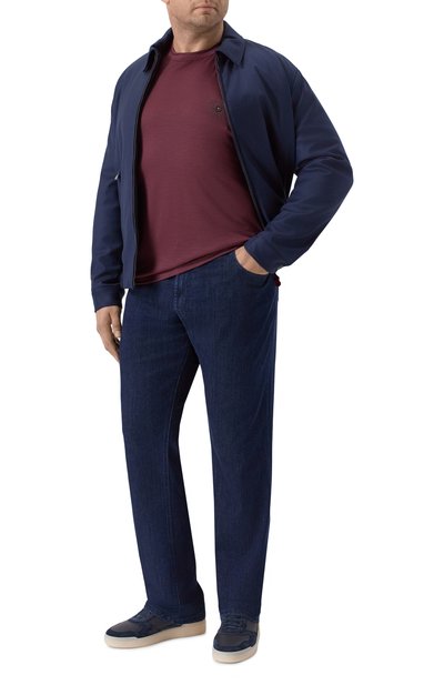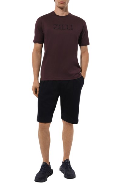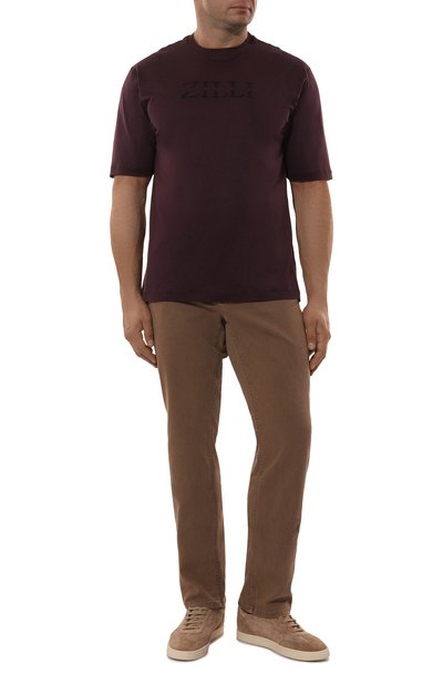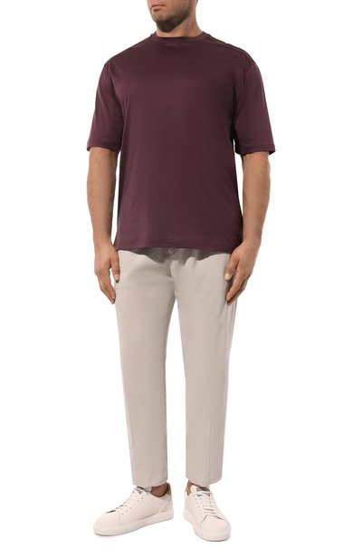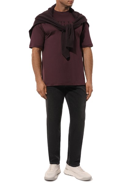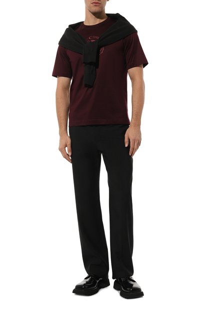 Футболку прямого кроя выполнили из хлопкового джерси. Модель с круглой горловиной в рубчик украсили логотипом марки, вышитым контрастной нитью спереди.
