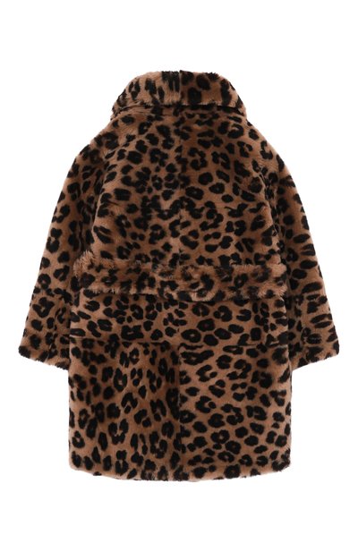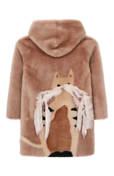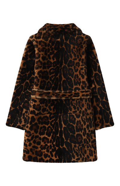 Шубу с двумя врезными карманами и регулируемым капюшоном с ушками сшили из стриженной овчины с леопардовым мотивом. Модель на молнии представлена эксклюзивно в ЦУМе.