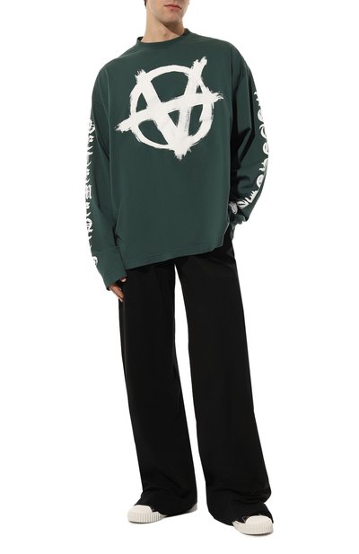 Для создания лонгслива BB Icon Stencil свободного кроя использовали хлопковый трикотаж. Декоративно состаренную модель со спущенной линией плеч украсили логотипом и эмблемой марки спереди.
