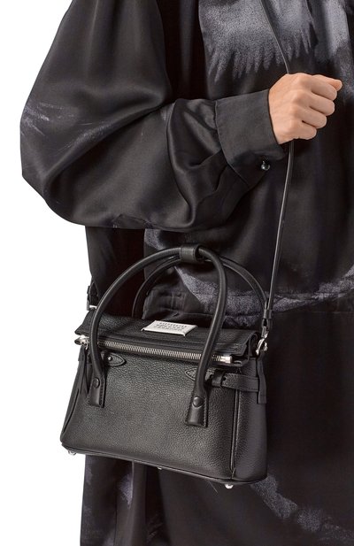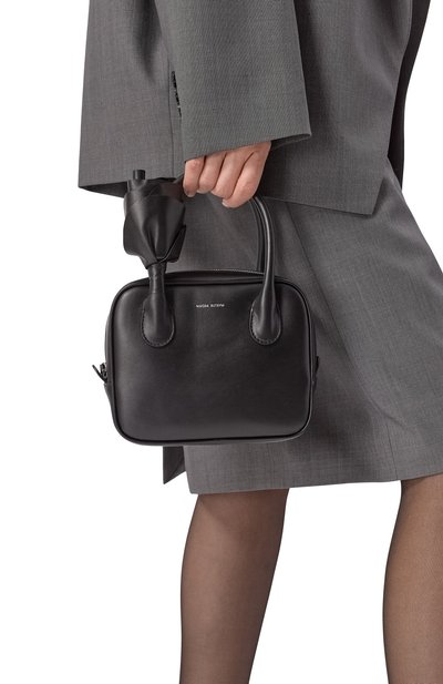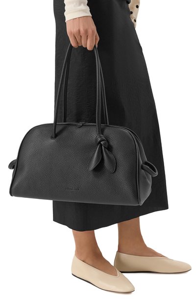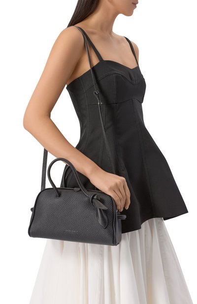 Сумку Le Petit Turismo с внутренним карманом изготовили из зернистой телячьей кожи. Одну из двух коротких ручек аксессуара украсили объемным узлом.