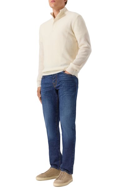 Джинсы D-Labb Track, представленные эксклюзивно в ЦУМе, выполнили из стрейчевого денима с добавлением вторичных хлопка и полиэстера. Модель, постиранную с искусственными камнями и неагрессивными химикатами, дополни ли эластичными манжетами и поясом, врезными боковыми карманами и накладным задним с брендированным патчем.