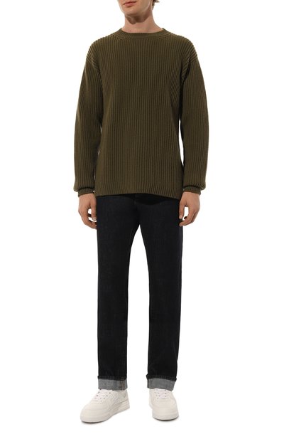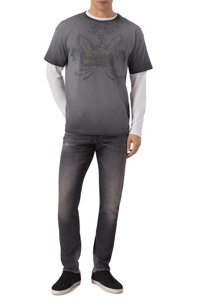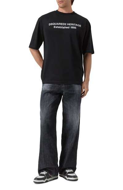 Широкие джинсы 2001 D-Macro-Fsh выполнили из неравномерно выбеленного хлопкового денима с добавлением пеньки. Самый маленький из пяти карманов украсили фирменной диагональной нашивкой, а пояс модели сзади дополнили брендированным патчем.