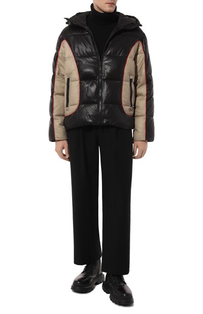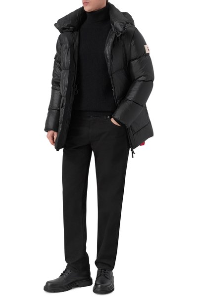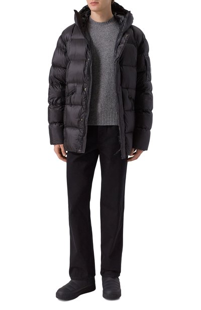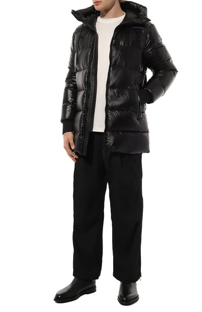 Стеганую куртку W-choco на утином пуху выполнили из облегченного нейлона. Модель с регулируемыми кулисками на манжетах и по низу дополнили капюшоном, скрытым в воротнике-стойке. Левый рукав украсили фирменной эмблемой Oval D.